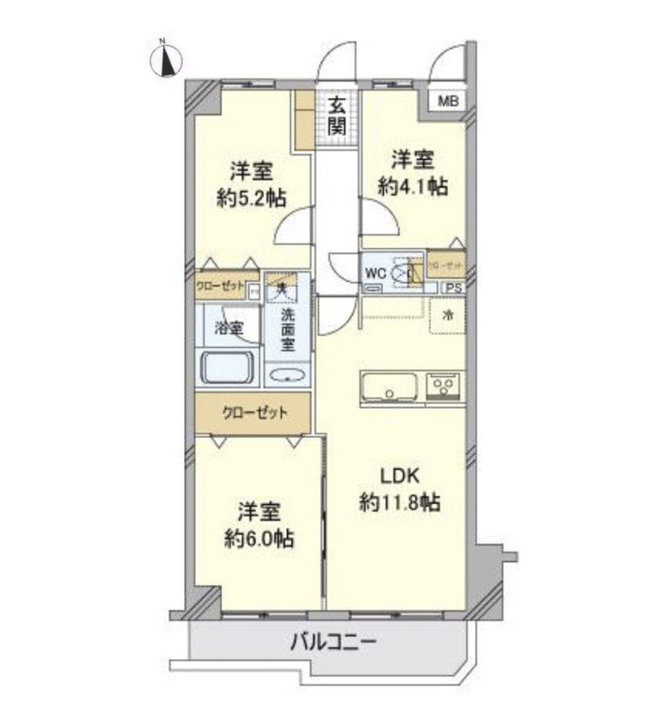 | 専有面積 | 59.36㎡ | その他面積 | バルコニー面積:6.61㎡ |